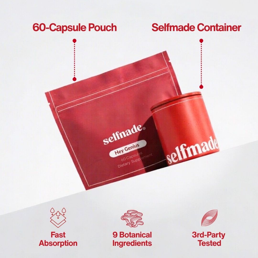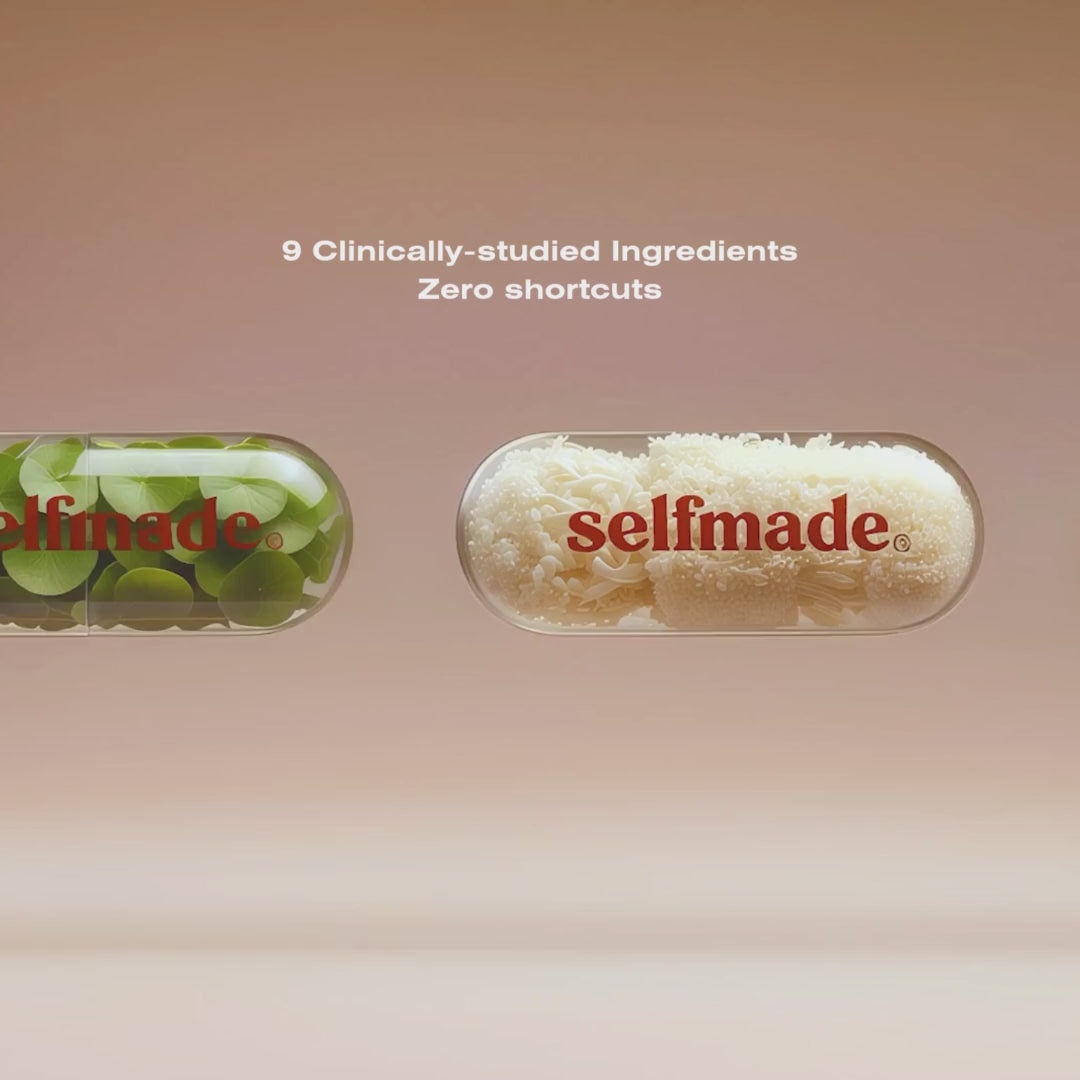 Selfmade's formula was built to respond to your body's changing needs: boosting energy when you're depleted, regulating your nervous system when cortisol spikes, sharpening focus when estrogen drops and brain fog creeps in.