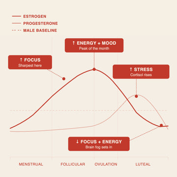 A man's hormone levels stay roughly the same every day. A woman's estrogen and progesterone shift across a 28-day cycle, directly affecting her focus, energy, and stress response every single week.